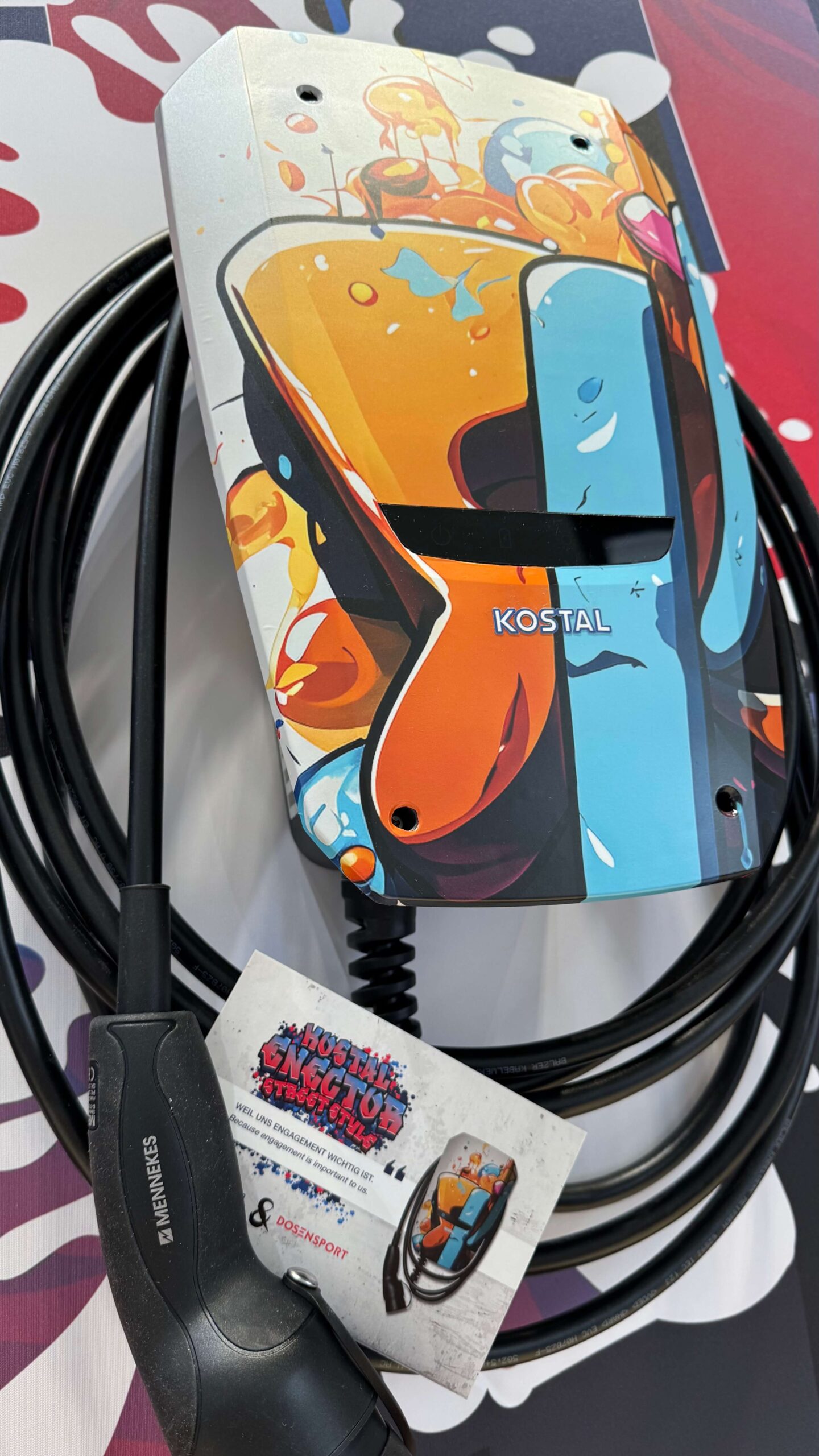Die „Stille Auktion. Laute Wirkung“ ist ein herausragendes Beispiel dafür, wie Kunst genutzt werden kann, um Gutes zu tun. KOSTAL Solar Electric, bekannt für seine innovativen Lösungen im Bereich Solarenergie, beauftragte Dosensport, zwölf ihrer Wallbox ENECTOR Einheiten in begehrte Sammlerstücke zu verwandeln. Jede Wallbox wurde von Hand mit einem einzigartigen Design versehen, was sie zu einem unverwechselbaren Unikat macht.